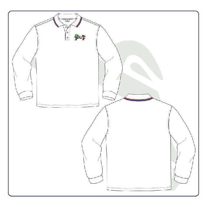 - Polo colegial de manga larga, realizado en pique con cuello y parte final de las mangas en canalé.